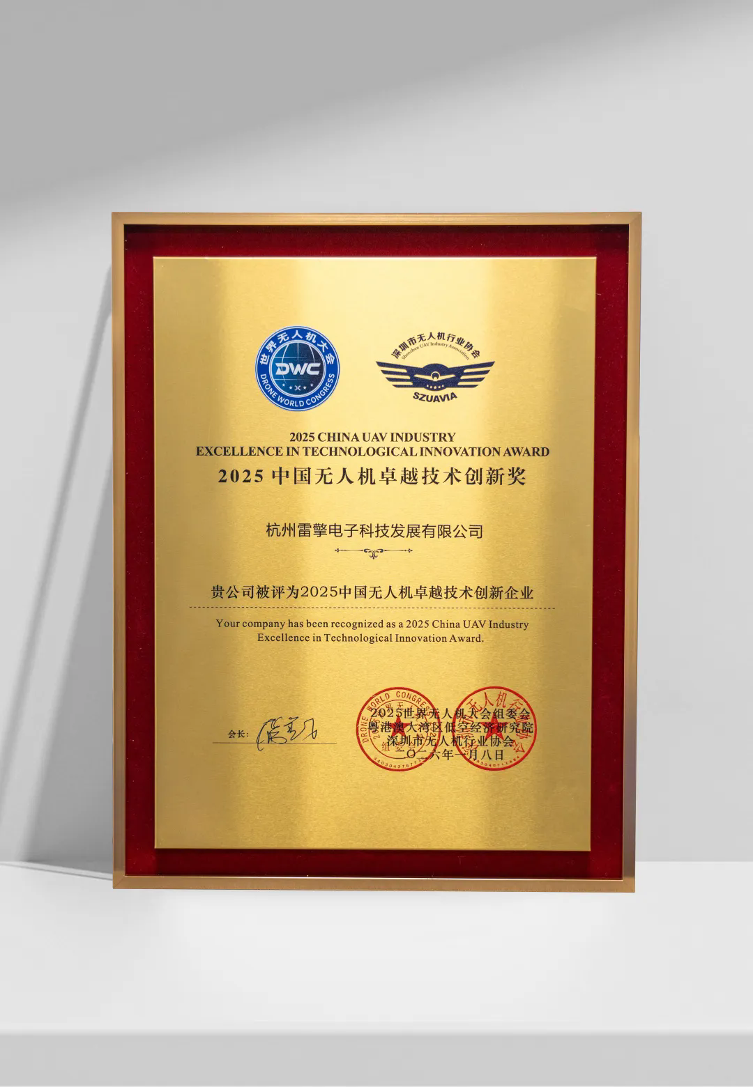 作为专注低空安全解决方案的核心企业,杭州雷擎电子科技发展有限公司凭借在低空安全领域的技术深耕与创新实践,成功斩获2025中国无人机(行业)卓越技术创新奖,以实力见证低空经济发展浪潮中的行业担当。