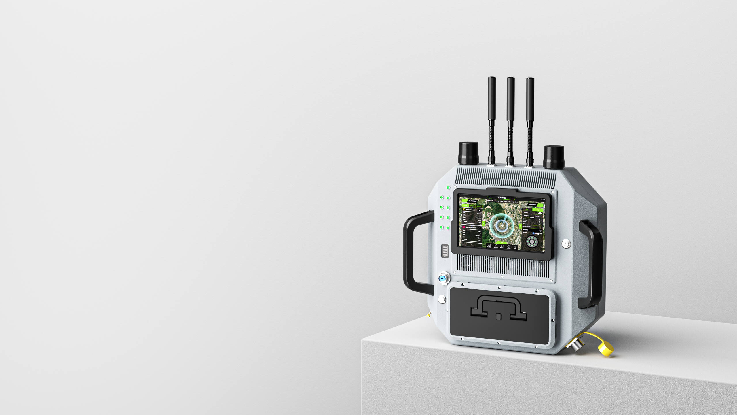 产品搭载超宽带压制模块,通过多重侦测技术实现全频段信号覆盖,既能敏锐捕捉1.5GHz、2.4GHz、5.2GHz、5.8GHz等常见频段,又可自适应识别新型无人机协议。其独创的"侦干诱一体化"系统可同步完成信号识别、动态干扰和飞行器溯源,配合高精度定向天线,在超长作用半径内形成立体防护网。设备内置智能温控模块与防潮结构,配合可更换锂电池组,在严苛环境下仍能保持5小时持续工作,通过高亮触控屏与状态指示灯,设备运行数据与周边电磁环境态势实时可视,大幅简化操作流程。